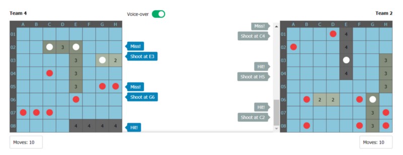 Alhoewel de meeste ontwikkelaars heel enthousiast waren begonnen, lukte het bijna geen enkel team om in de beschikbare tijd een winnende strategie uit te programmeren. Een team was in de weer gegaan met probability matrices. Die aanpak was jammer genoeg voor het toernooi nog niet af, dus dat team verloor. Uiteindelijk ging bijna elk team net voor de deadline terug naar de standaard strategie die we hadden meegeleverd: random schieten, maar niet twee keer op dezelfde plek.