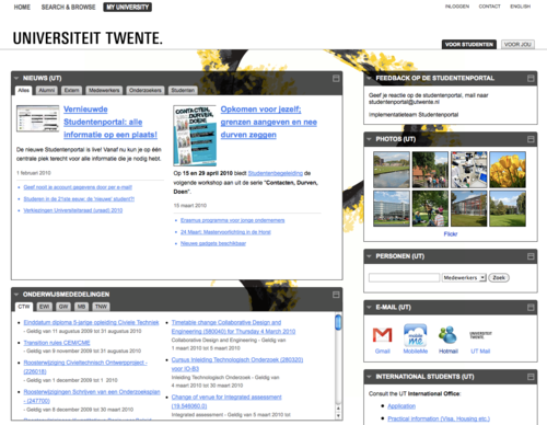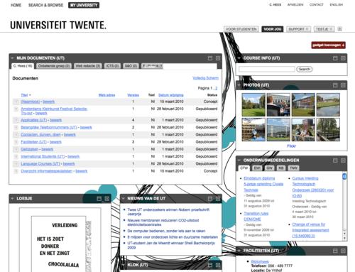 De Universiteit Twente kwam in 2009 naar Q42 met een pitch. Daarin stond dat de UT meer dan 1,5 miljoen documenten online had staan die door een redactie van meer dan 1000 personen op verschillende locaties werd onderhouden. Ons werd gevraagd een nieuw systeem te verzinnen waarbij het beheren van content nog steeds door diezelfde decentrale redactie gedaan kon worden. Daarbij moest wel de vindbaarheid, structuur en consistentie van de content verbeterd worden. Eindgebruikers zouden die content op een “iGoogle-achtige” manier moeten kunnen consumeren.