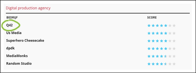 Staan we in de Emerce 100 zo maar op de eerste plaats van de categorie ‘Digital Production Agency’! 😲 Nadat we vorig jaar voor het eerst werden opgenomen in de lijst met beste bedrijven in e-business, eindigen we in 2019 met vijf sterren bovenaan in de ranking van Nederlandse digitale productiebureaus.