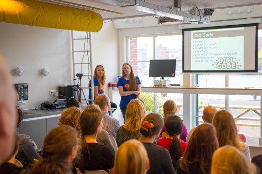 Besides working on awesome projects, we’re also invested in making code accessible to all. With our foundation Code Uur (the Dutch version of Hour of Code), we’re working to get programming into the syllabus of all school children in the Netherlands. And we don’t just want to inspire kids to code. We want the world of code to be diverse and we realize the gender gap in tech but also in code specifically is very real. We really think our work can benefit from having more women on board and creating a more diverse working environment, so we’re working on increasing the number of female Q’ers — since last year, the percentage of women at Q has risen from just 6% to 13%, and we’re not done. So when Lieke Boon offered to give a talk at our office on gender bias in tech, Katja came to me and asked: “Can’t we make this bigger than just one talk for Q’ers only?” And so we did. Girl Code was born. We contacted Girls in Tech to reach the right audience via their Meetup group and social media channels.