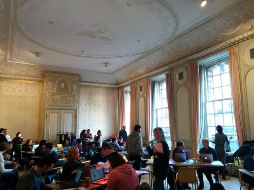 De hackathon was goed geregeld. Kr=10 was vooral onder de indruk van het gebouw middenin Amsterdam waar ze de hele dag mochten programmeren. Afgeleid door het plafond. Ze heeft het er nu nog over. Het eten was ook om over naar huis te slacken en Kr=10 en Mark vonden dus een nieuw publiek voor TimL’s bananentijd. Bananentijd? Ja om 15.00 uur, elke dinsdag, iedereen een banaan @ Q. Mét soundtrack. Net ook weer. Dan weet je dat.