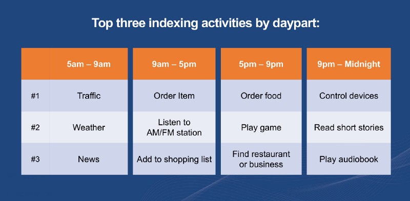 Naast een natuurlijke stem is een goed dialoogontwerp cruciaal om teleurstelling bij gebruikers te voorkomen. Een spraakgestuurde assistent schept immers hoge verwachtingen bij mensen. Het succes van een voice-app wordt bovendien bepaald door de relevantie van de use case. Thuis of op het werk apparaten bedienen met je stem ligt heel erg voor de hand. Zeker als het om routinetaken gaat die je dagelijks uitvoert. Maar er zijn tal van andere momenten te bedenken waarop interactie met je stem veel natuurlijker is dan met je handen. Bijvoorbeeld als je met je armen vol boodschappen staat en de digitale assistent wilt vragen of een pakketje al is aangekomen. Of als je druk aan het koken bent en tegelijkertijd een bioscoopkaartje wilt boeken. Cijfers uit de VS (pdf) laten zien, dat mensen steeds meer gewend raken in zulke situaties spraakopdrachten te gebruiken.