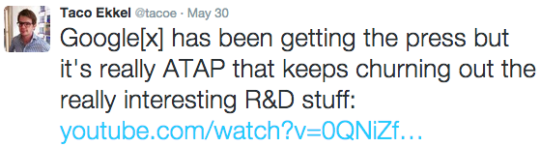 Voor vette projecten die grootse problemen oplossen houd je natuurlijk Google X in de gaten. De media zorgen er wel voor dat je daar niks van mist. Maar voor praktische IoT-projecten die je zelf nú al in kan zetten is het een aanrader om vooral ook Google ATAP (Advanced Technology and Projects) te volgen. Bovenstaande projecten komen namelijk vooral uit de pet van het ATAP-team. Het moonshot-gehalte ligt iets lager, maar het zijn wel allemaal hele vette dingen. Met API. En laat dat nou handig zijn voor ons. IoT is namelijk zeg maar echt ons ding. En Google I/O 2015 stelde ons dus allesbehalve teleur. We kunnen niet wachten om tegen al die projecten aan te kunnen programmeren.