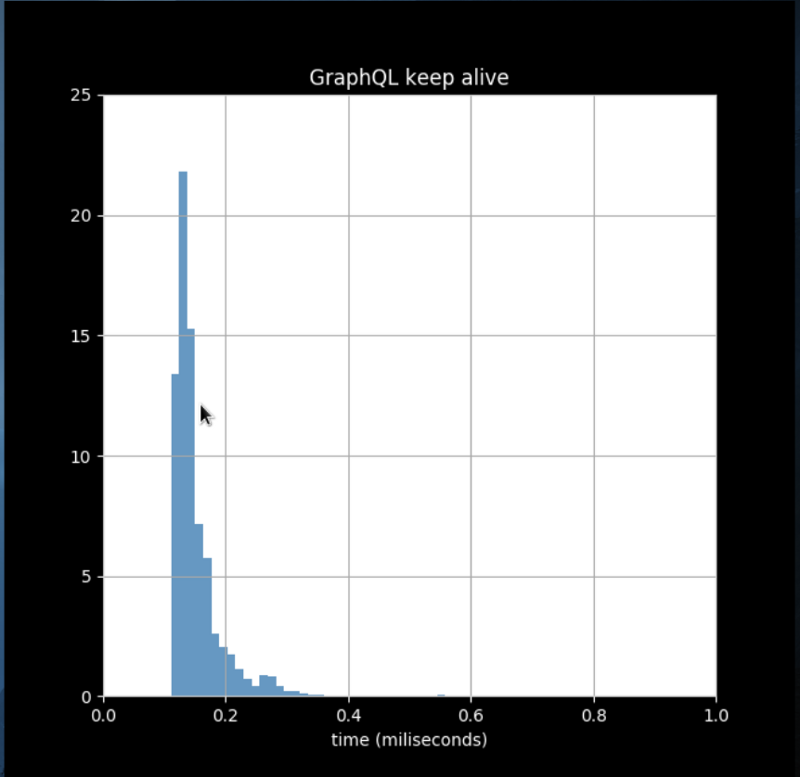 I created a simple Nodejs webapp, one for GraphQL and one for gRPC, and ran it on localhost. I queried the servers 10k times with a script and measured the request latency with different data sizes for each of the apps. I plotted the results using python and matplotlib.