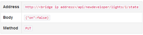 En simpel dat het is! Het is een REST API, en een lamp uit zetten gaat als volgt: