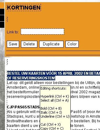 Contrary to Lime however, these blocks are not HTML driven but find their origin in the site’s xml back-end. Which, in the end, makes Holland Festival’s editor fit right into Q42’s current development line-up.