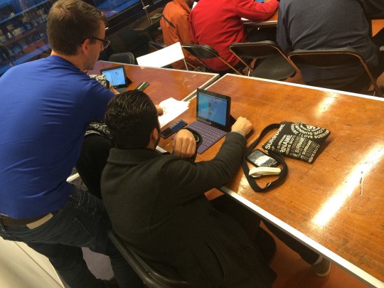“Ik geef vanmiddag samen met Thijs vluchtelingen in Amsterdam een opleiding tot gastdocent voor CodeUur! Microsoft heeft ons daarvoor een boel Surfaces gegeven, dus daar ben ik nu Scratch (scratch.mit.edu) op aan het installeren.”