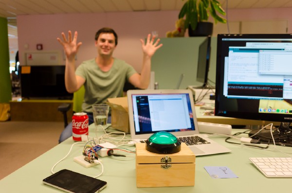 Maar er is meer: met deze knop is straks zoveel te managen binnen Q, zoals de lampen, de deurbel, de lift. Huh? Hebben we dat niet eerder gehoord? The Door-team doet toch de deur, team Willy Wonka doet toch iets met de lift? Ja ja, daarvan is Ted zich bewust, maar dat is het gave: deze button maakt al die w00tcamp-projecten nog meer awesome.
