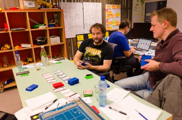MARIO CARD — Zijn we op w00tcamp of zitten we in een spelletjescafé? Er zijn maar weinig teams die zo weinig achter de computer zitten of in de weer zijn met soldeerbouten, schroevendraaiers en snoertjes. Ze spelen spel na spel om er maar achter te komen of het leuk is, en blijft. Maar de gesprekken zijn van hoog niveau: laps, extensions, hit-cards, Japanse getallen etc etc. Vanmorgen om half elf was het idee al klaar, en nu draait het om finetunen en finetunen.