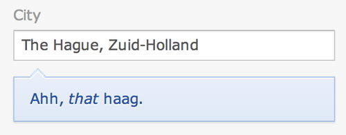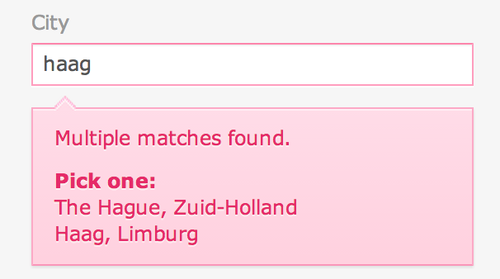 But what I liked most about my 5 minutes on OkCupid was the feedback on the registration flow. Check out the city box, when I fill in that I’m from Leiden: