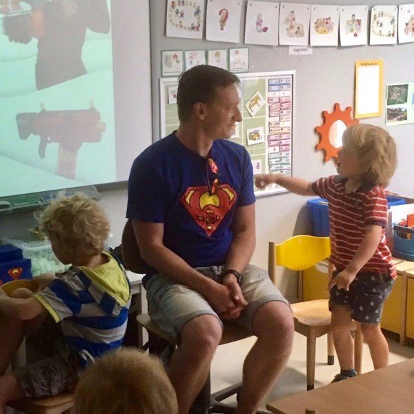 Blijkbaar is dat ook in de nationale kleuterleerkrachten-Whatsapp-groep gemeld, want inmiddels is deze les in negen kleuterklassen gegeven, waarvan vier door mijzelf, de anderen door te hulp geschoten Q42-collega’s. (Kudo’s aan Kars, Bram en Michiel!) En er worden nog meer lessen gepland.