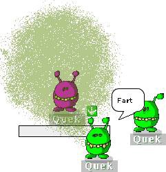 Quek focuses on the interactive and fun part of a conversation. Having yourself represented by a visual funny cartoonesque character with the possibilities of not only chatting with others, but also interacting, like kissing a friend, kicking someone, dancing, jumping, playing minigames together and even… farting. Which, in a weird way always seems to be one of the most popular functionalities of a Quek-enabled community.