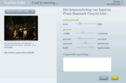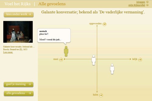 Doel van de ‘Voel het Rijks’ site was om de interactie tussen het museum en haar klanten te bevorderen, omdat men wil weten wat de interesses van de klant zijn en hoe de klant over kunst denkt.