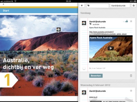 Door het tonen van een combinatie van het leerboek, werkboek en een persoonlijk schrift kunnen leerlingen en docenten volledig via de iPad werken. In het schrift kun je namelijk alle opdrachten, aantekeningen, foto’s en links kwijt en door deze te delen met mede-leerlingen kan er ook feedback verkregen worden dmv likes.
