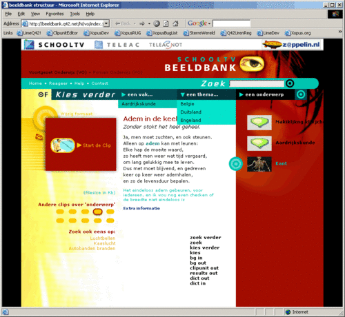 Daarnaast is er bij elke clip iets te lezen en kan snel worden doorgezocht naar aanverwante onderwerpen en clips.