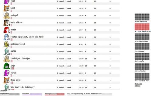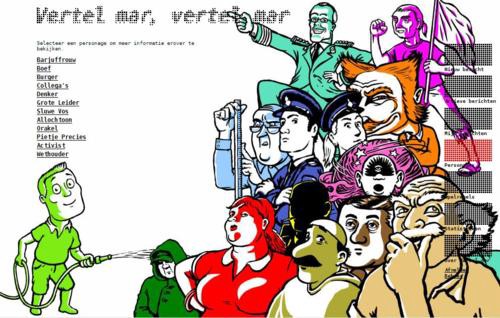Vertel mar is dus een emailprogramma in je browser. Maar als je een mailtje verstuurt, dan is dat anoniem: niemand weet wie je bent. Om toch ervoor te zorgen dat er een vorm van identiteit wordt gehandhaafd, kwamen de ontwerpers met het principe van een ‘personage’. Als je een bericht stuurt, dan doe je dit, net als in een soort rollenspel, volgens de ideeën van zo’n personage. Bijvoorbeeld de boef, de barjuffrouw, of de burger.