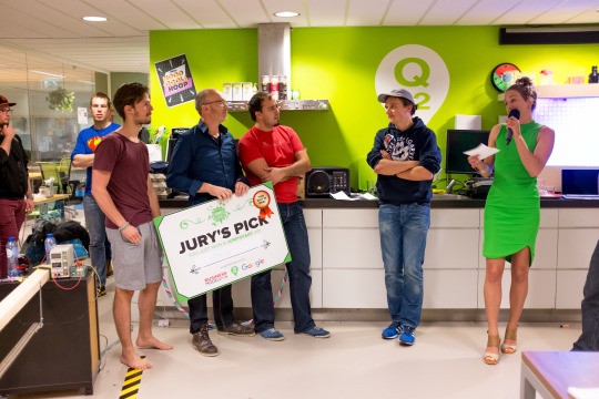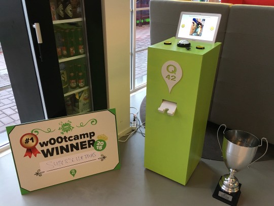 Afgelopen vrijdag en zaterdag was het weer tijd voor ons jaarlijkse w00tcamp. En het was weer een feestje. Er is niet per se een memo geweest, maar dit jaar stond w00tcamp in het teken van Internet of Things. Wat is er veel hardware gebruikt door alle teams! De resultaten liegen er dan ook niet om: elk team had een tastbare demo. Het kiezen van de winnaar was dus nog best een opgave. Maar de winnaars zijn bekend. Winnaars? Ja, winnaars! Dit jaar hadden we voor het eerst twee prijzen: de winnaar van w00tcamp en de winnaar van een eigen jumpstart. De winnaar van w00tcamp werd door iedereen gekozen, de winnaar van de jumpstart door een heuse vakjury bestaande uit: Martine de Ridder van Business Models Inc., Matt Feigal van Google en natuurlijk Kars Veling van Lesso… Ehhh Q42!