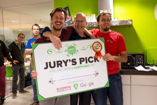 Nog zo’n wereldverbeterend idee heeft team ABle. En dat dat idee anderen ook enthousiast maakt, is wel duidelijk: Johan, Michiel, Mark en Guido; Niels van Shakingtree Interventions; Vasilis vriend van Q en Thomas van Fabrique wonnen er namelijk de Jumpstart van de enige echte vakjury mee. Het idee? SnappCar voor mindervaliden.