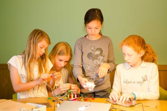 Voordat je begint met typen moet je natuurlijk eerst even nadenken. Dat wisten de leerlingen allang, want met Smart Life hebben ze niet alleen alles over programmeren geleerd, maar ook over concepting, brainstormen en samenwerken. “Kunnen we dit met GPS fixen?” vroeg één van de kleine Einsteins zich af. Helaas, dat werkt binnenhuis niet al te best, en ook de indoor alternatieven, zoals iBeacons, zijn vaak niet precies genoeg voor het Mic 3000-concept. Na intensief overleg met onze Lukas en Johan werd uiteindelijk gekozen voor het maken van smart oppervlaktes, met behulp van Makey Makey’s en aluminiumfolie.